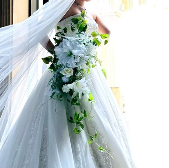 ブライダルフォトのために作ったブーケとブートニアです とてもゴージャスで綺麗です 造花ですのでずっと飾って置けます